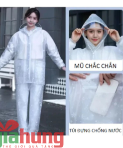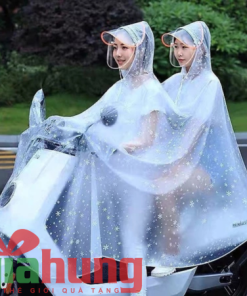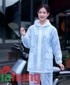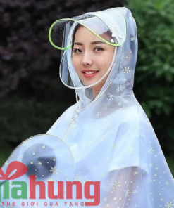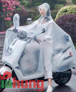 Áo mưa thời trang dáng dài in hoa tuyết đẹp mắt, chất liệu PVC dày dặn, chống thấm nước hiệu quả, kèm nón trùm có kính chắn gió – tiện lợi và hiện đại.