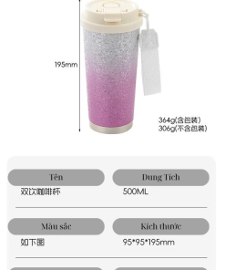 Bình giữ nhiệt lấp lánh thời trang, thép không gỉ cao cấp, giữ nóng lạnh lâu, nắp chắc chắn kèm quai xách – phù hợp đi học, đi làm, du lịch.