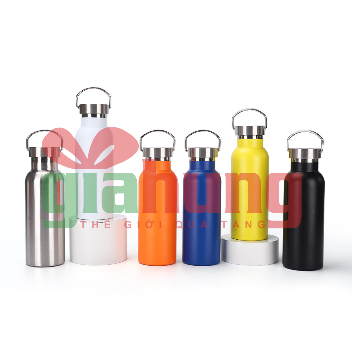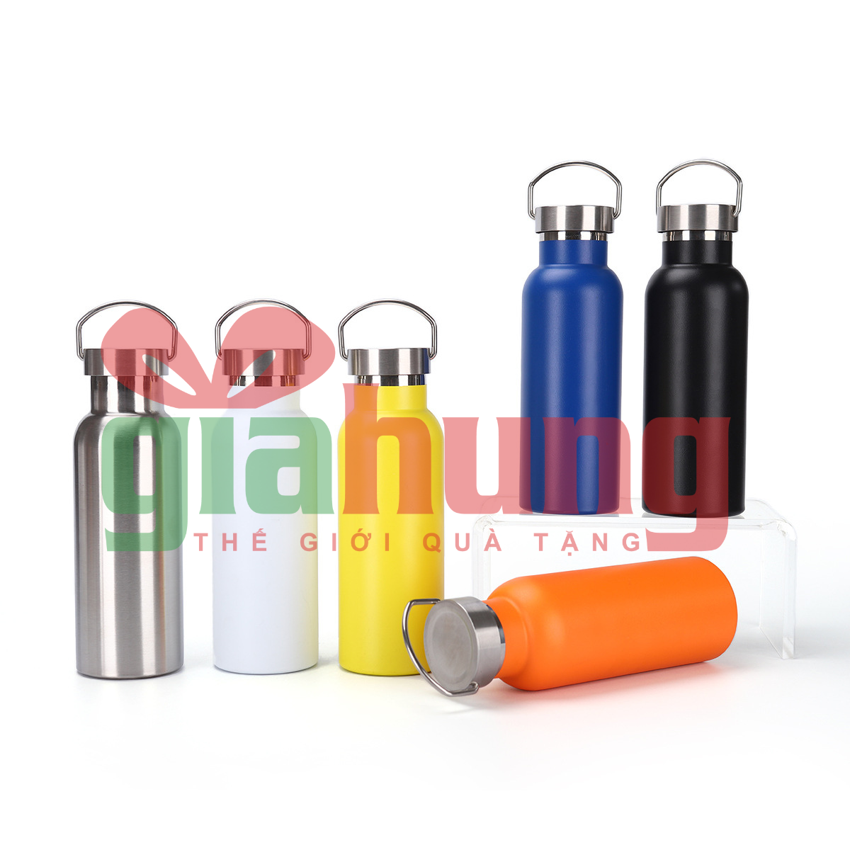 Bình giữ nhiệt inox 304 dung tích 500ml, nhiều màu sắc, có quai xách tiện lợi. Giữ nhiệt lâu, an toàn cho sức khỏe, phù hợp đi học, đi làm, du lịch và làm quà tặng in logo.