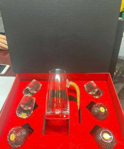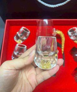 Bộ bình ly pha lê dát vàng cao cấp, hộp quà sang trọng, lựa chọn lý tưởng cho quà tặng doanh nghiệp và đối tác VIP.