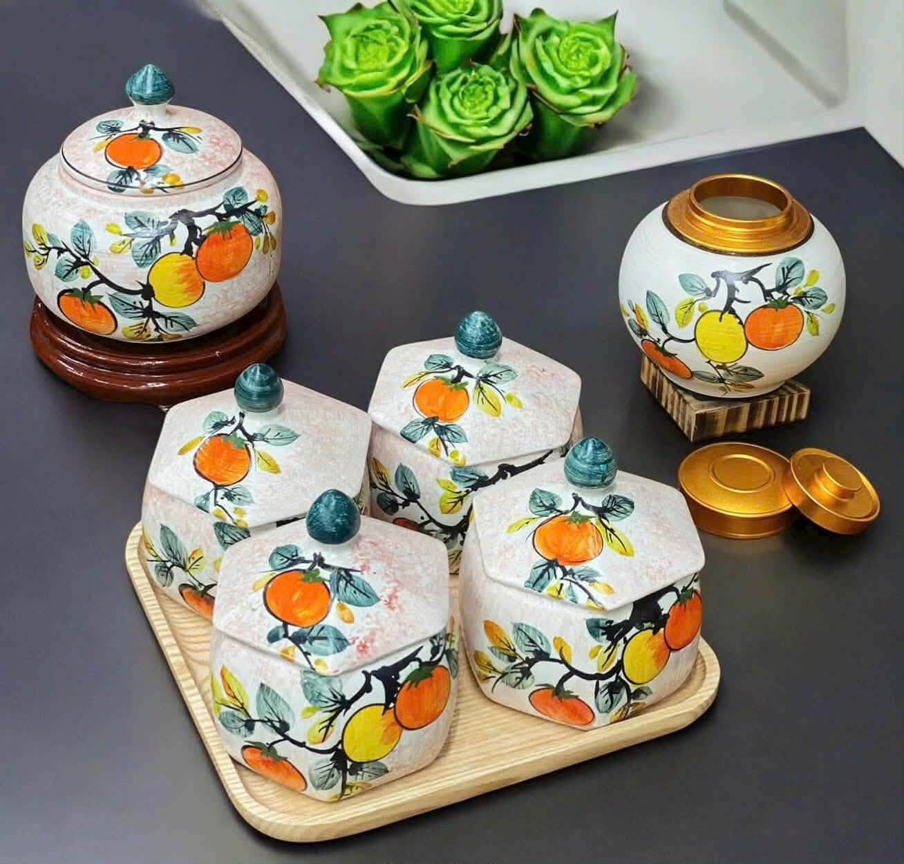 Bộ hũ đựng trà – bánh – mứt cao cấp