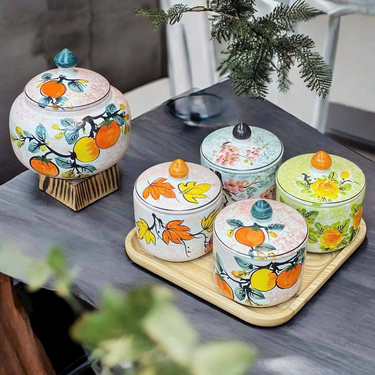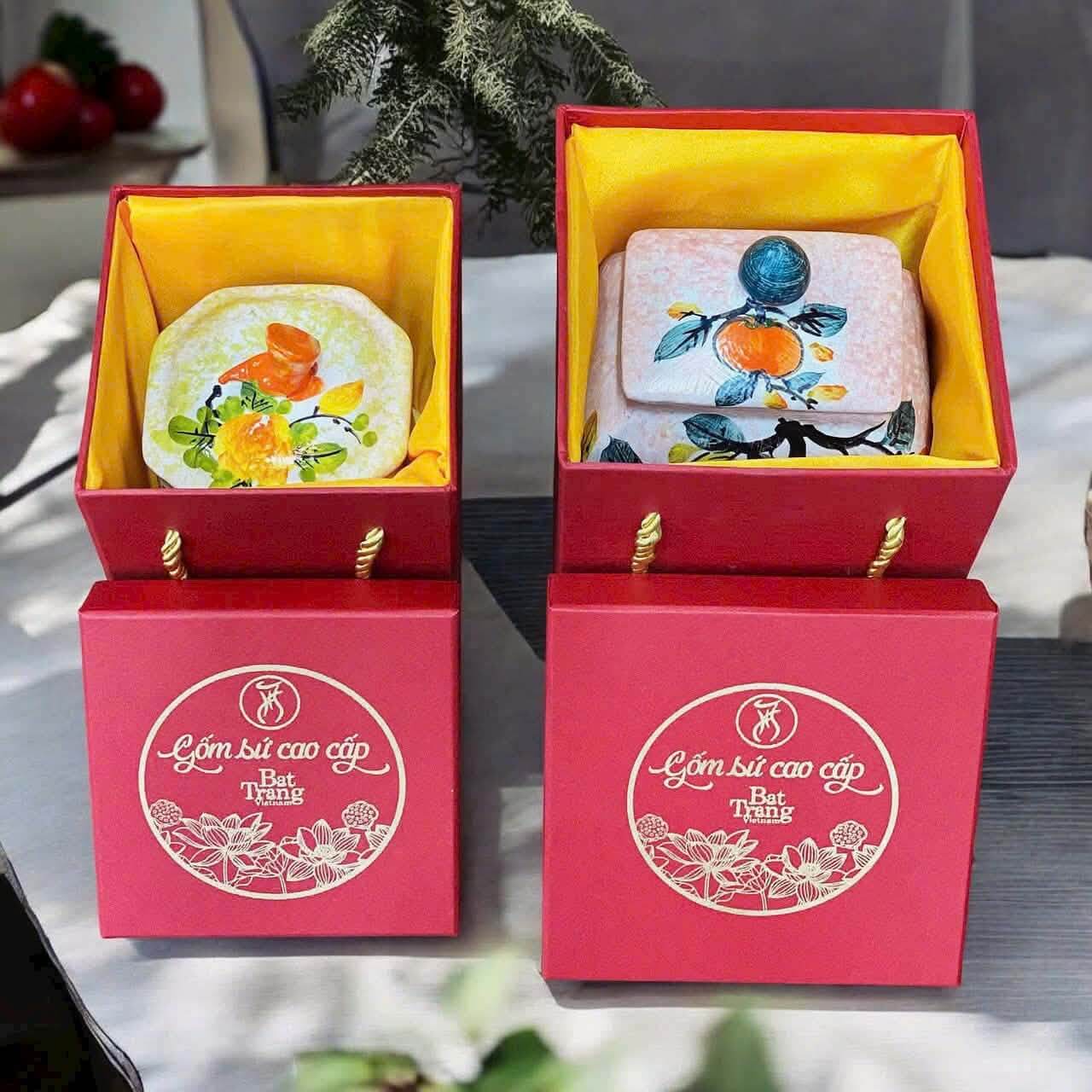 Bộ hũ gốm sứ cao cấp, thiết kế tinh tế, phù hợp làm quà Tết và quà tặng đối tác doanh nghiệp.
