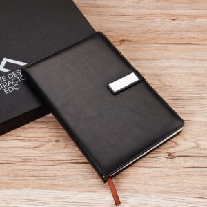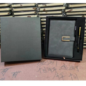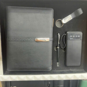 Thiết kế sang trọng – tinh tế, kết hợp 4 món quà thiết thực: sổ da cao cấp, bút ký, móc khóa kim loại và pin sạc dự phòng.