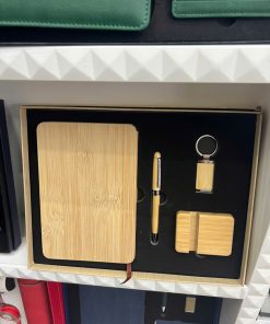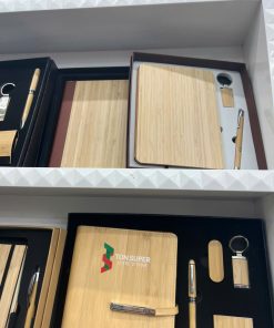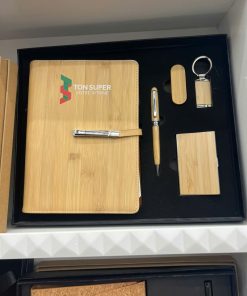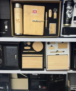 Bộ quà tặng doanh nghiệp cao cấp bọc tre: bình giữ nhiệt, bút ký, sổ tay,… sang trọng. Quà tặng đối tác, khách hàng, sự kiện chuyên nghiệp, tinh tế.
