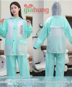 Bộ áo mưa 2 món (áo + quần) thiết kế thời trang, năng động, tiện lợi cho cả nam và nữ.