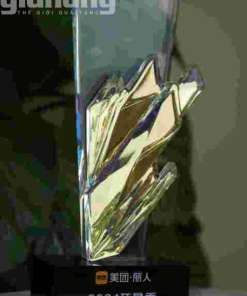 Kỷ niệm chương pha lê nghệ thuật gắn kim loại mạ vàng cao cấp, thiết kế sang trọng, phù hợp làm cúp trao giải, vinh danh và quà tặng doanh nghiệp chuyên nghiệp.