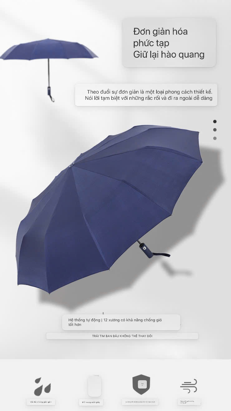 Ô dù tự động 12 nan được nâng cấp toàn diện với cơ chế mở – đóng chỉ bằng một nút bấm.