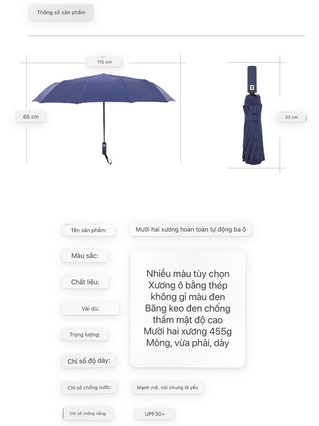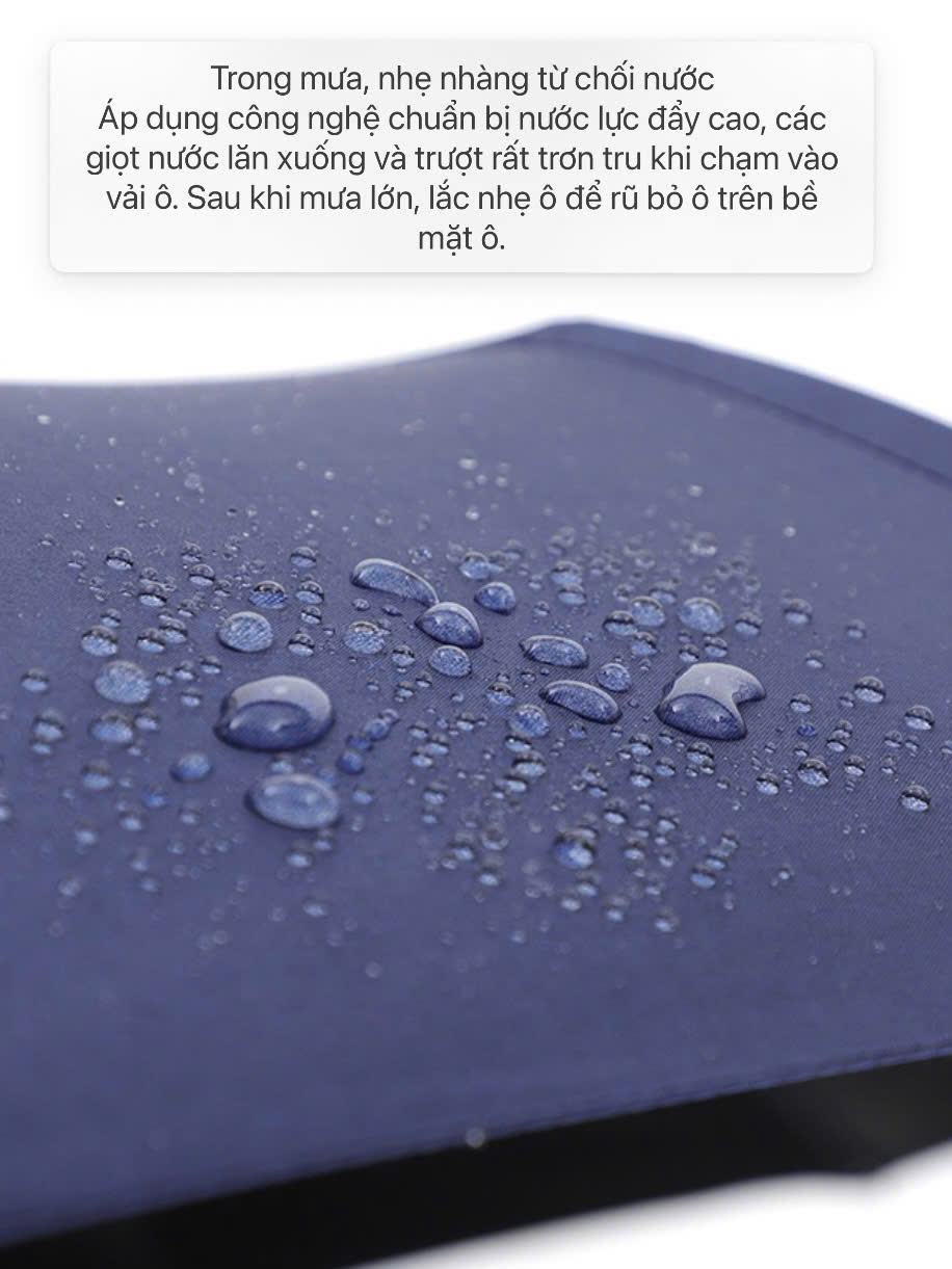 Vải dù chống thấm nước tuyệt đối, phủ lớp nano chống tia UV, bảo vệ da khi đi nắng, bền màu theo thời gian.