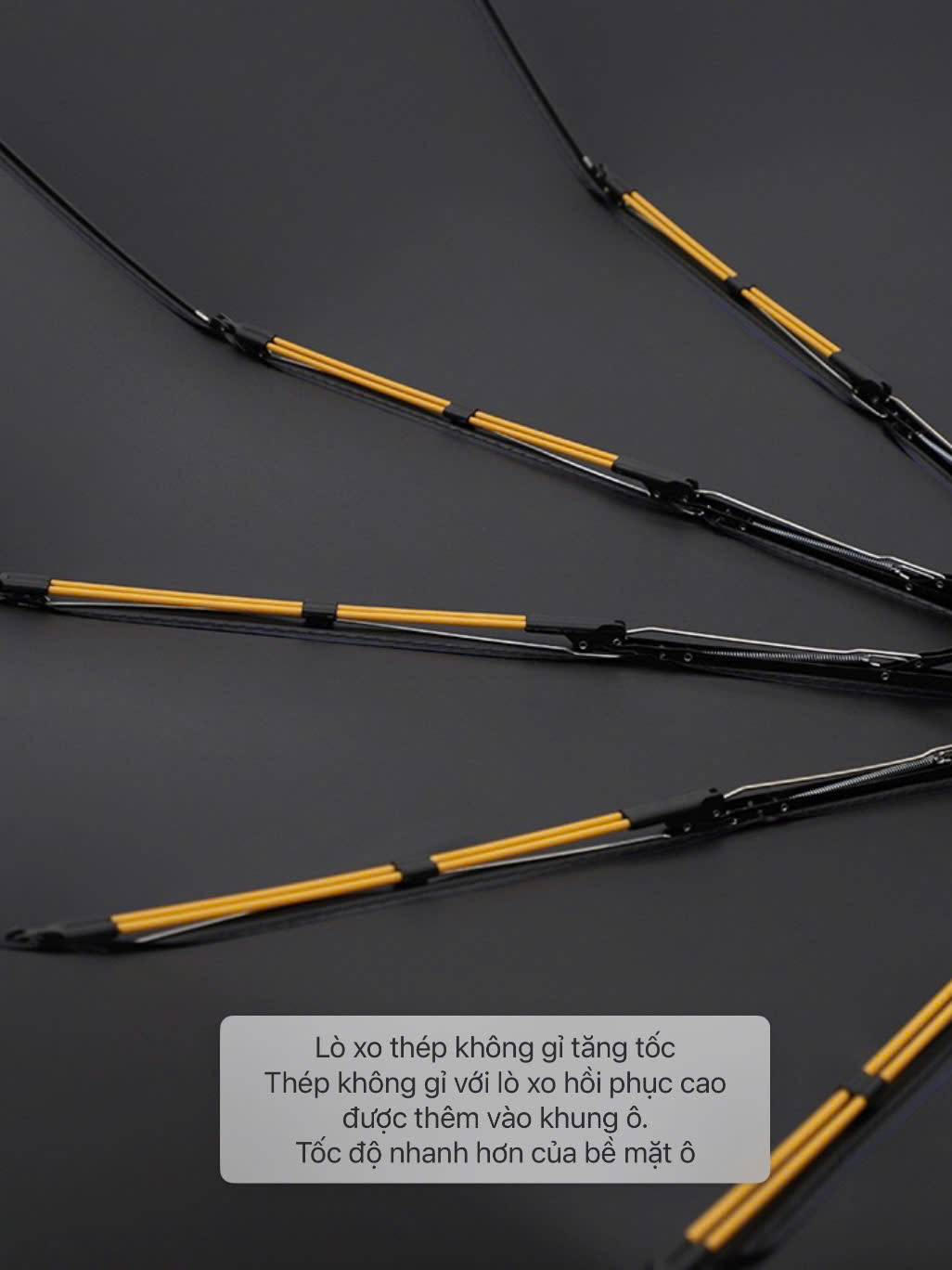Khung dù 12 nan thép carbon cao cấp, dẻo dai, chống gãy và chịu gió mạnh cấp 8–9 mà vẫn vững vàng.