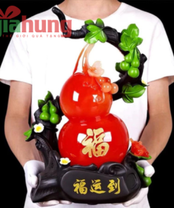 Tượng hồ lô phong thủy bằng nhựa cao cấp, phối họa tiết hoa lá và chữ Phúc – biểu tượng thu hút tài lộc, bình an và may mắn.