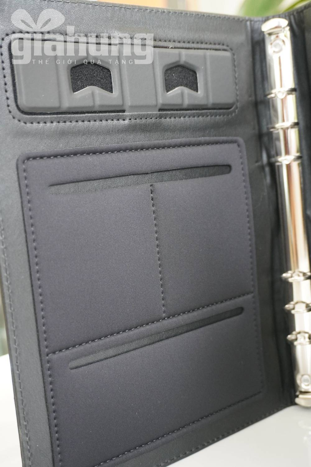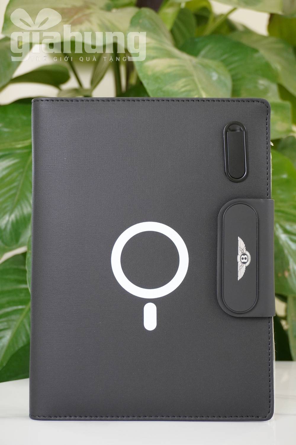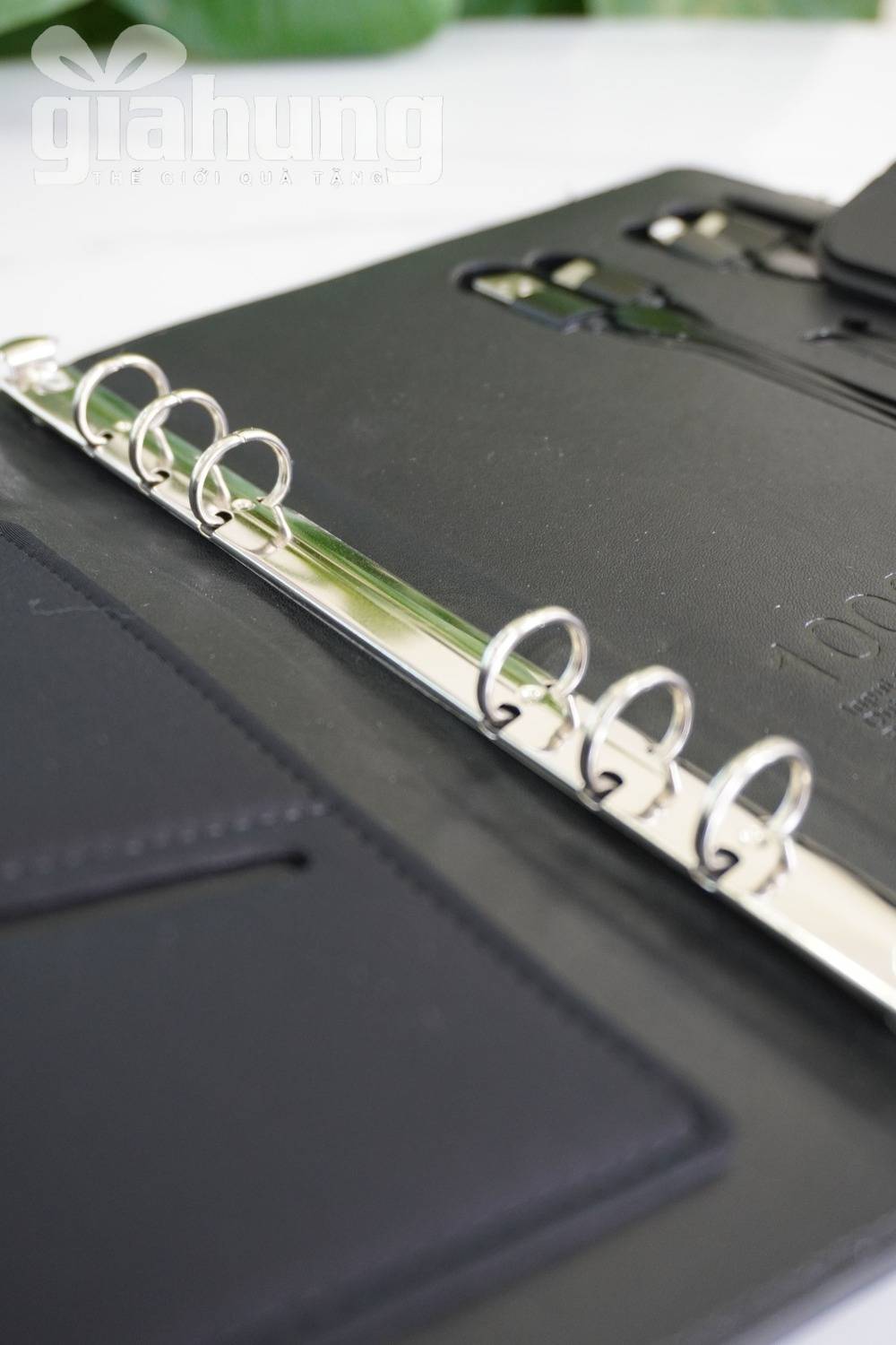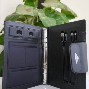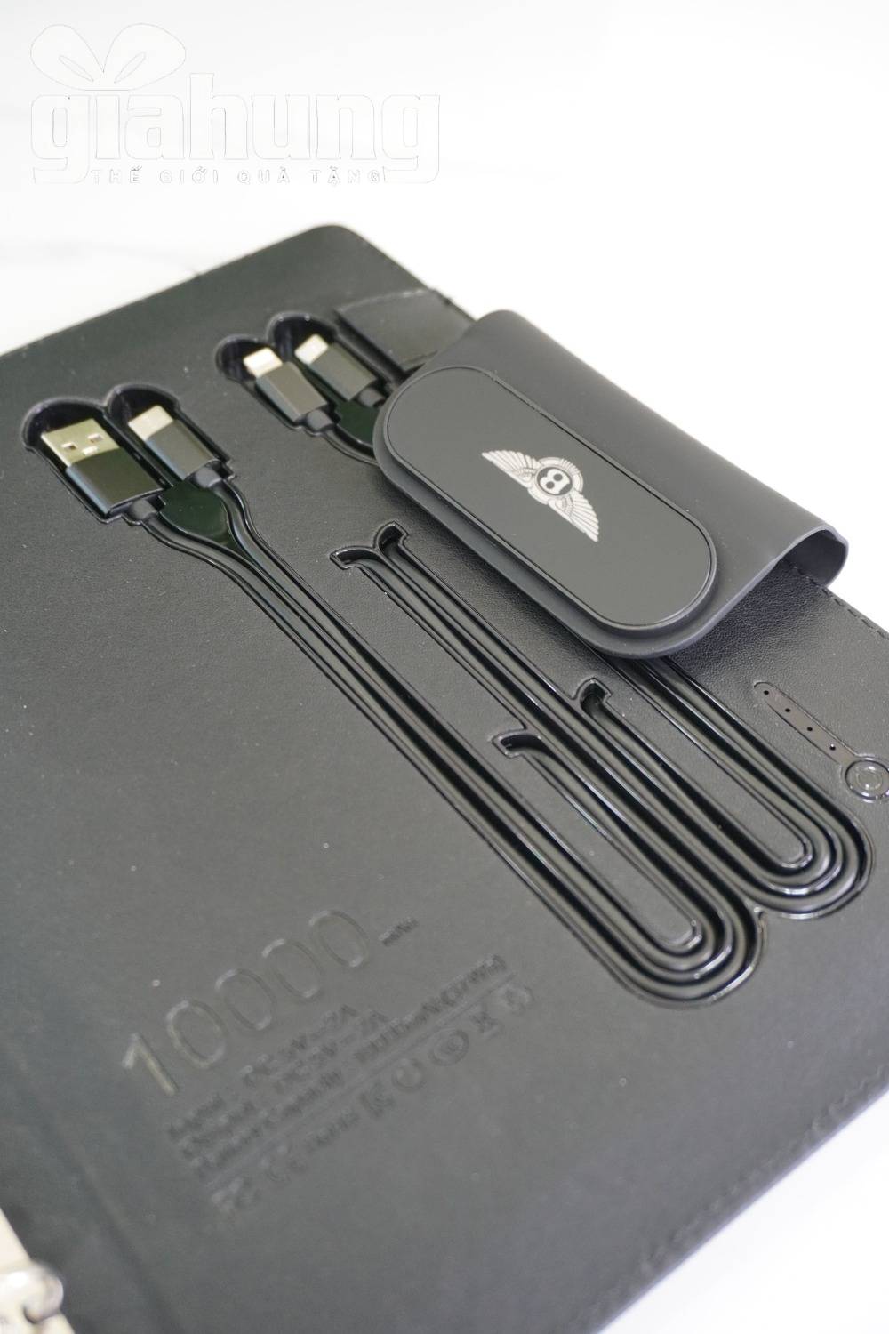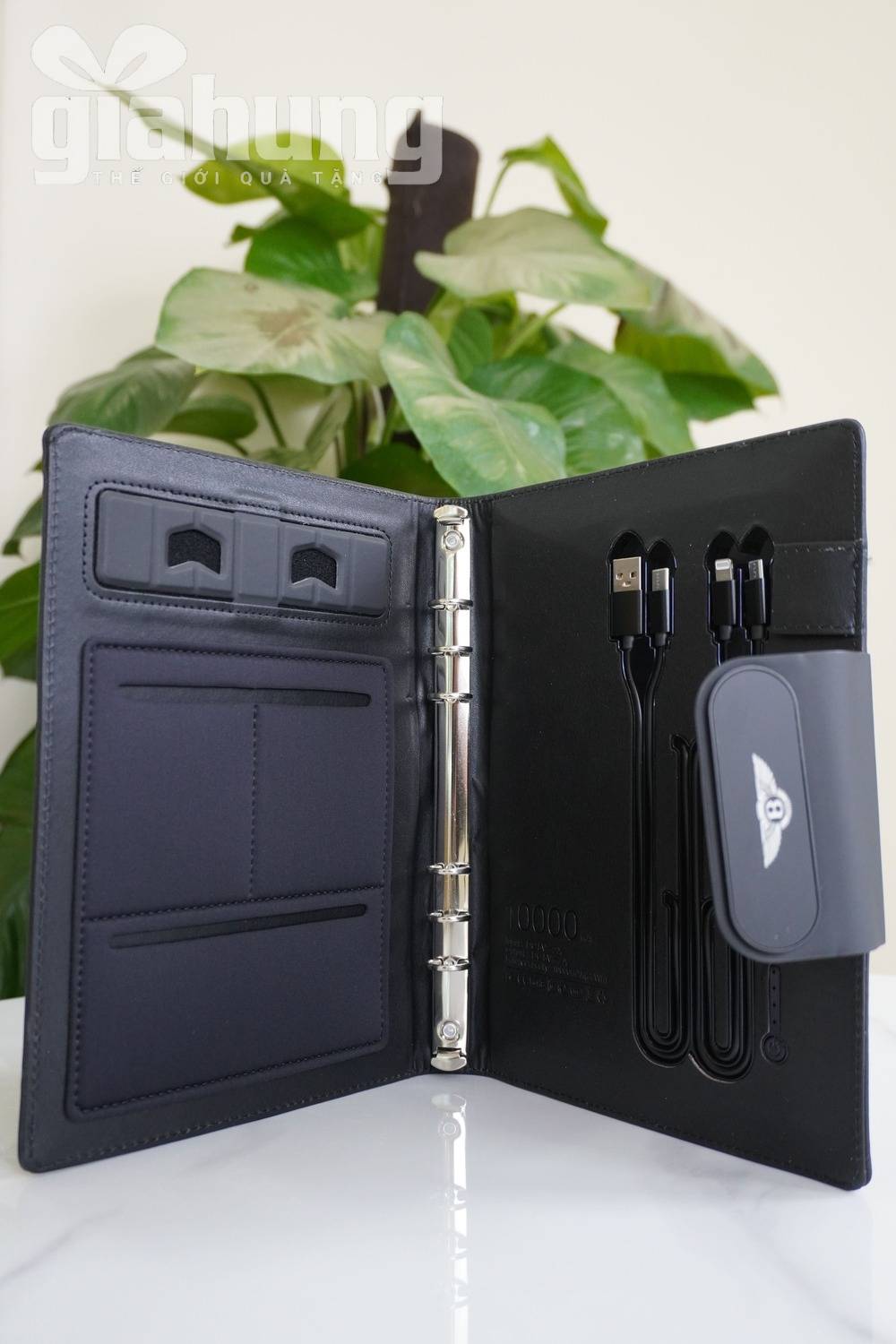 Sổ tay da tích hợp pin sạc dự phòng 10.000mAh, cáp sạc đa năng Type C – Lightning – Micro USB. Quà tặng doanh nghiệp cao cấp, in logo sang trọng, tiện ích công nghệ hiện đại.