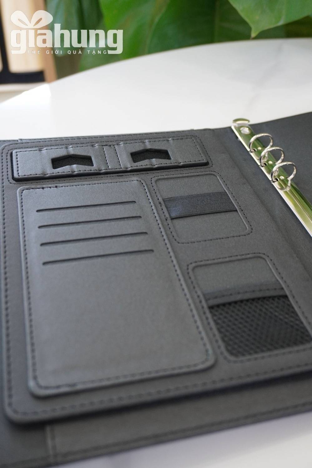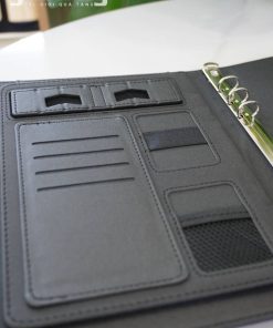 Sổ tay da cao cấp tích hợp sạc không dây – quà tặng doanh nghiệp sang trọng, in logo theo yêu cầu, phù hợp hội nghị, khách hàng VIP.