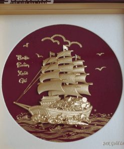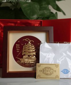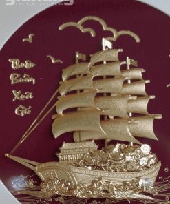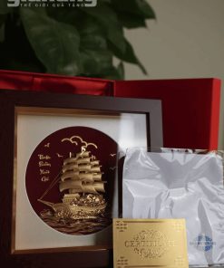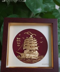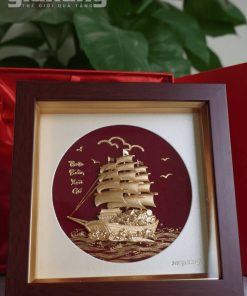 Tranh thuyền buồm mạ vàng 24K khung gỗ cao cấp, quà tặng doanh nghiệp ý nghĩa phong thủy. Nhận in logo, hộp quà sang trọng.