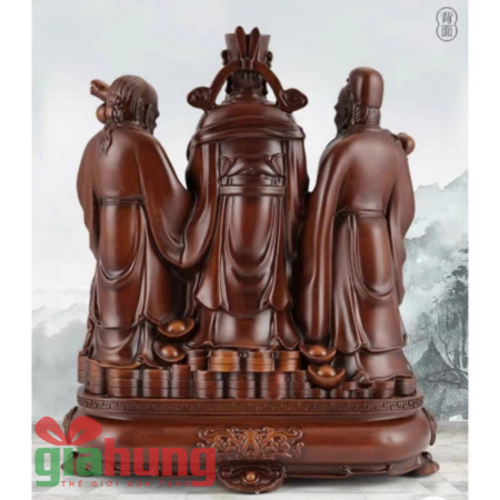 Tượng Tam Đa Phúc – Lộc – Thọ chế tác từ gỗ cao cấp, có vân gỗ tự nhiên, màu nâu sang trọng và trang nhã.